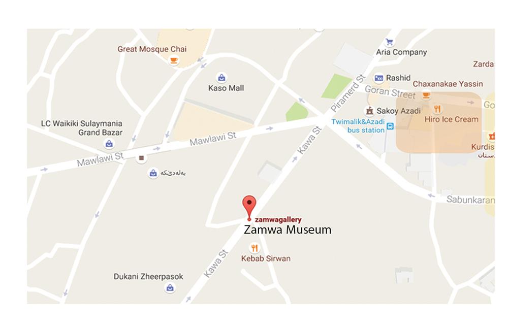 ناونیشان : مۆزەخانەی زاموا، بازاڕی شوشە، ئەسحابە سپی، شەقامی کاوە، سلێمانی، کوردستان/عێراق